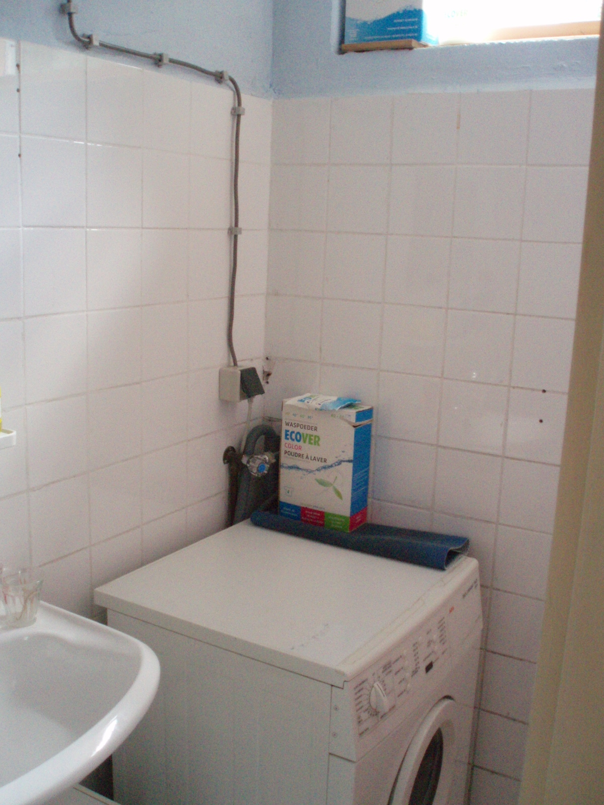 Links een wastafel en rechts een plek voor een échte wasmachine!